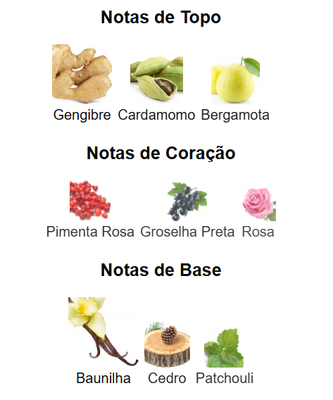 Notas de coração: groselha preta, cardamomo e rosa turca.