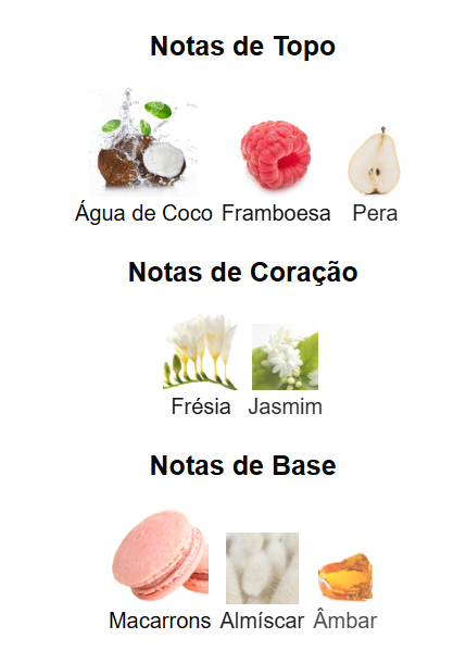 As notas de topo: Leite de coco, Framboesa, Pera.