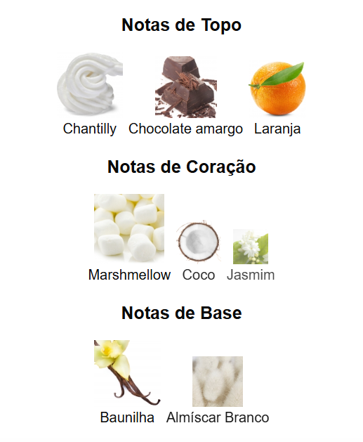 As notas de topo: chocolate amargo, laranja e chantilly.